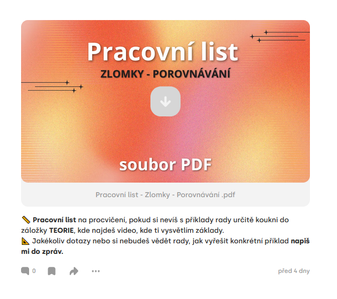✔ Možnost psát mi do zpráv/komentářů, když si nebudeš vědět rady a
