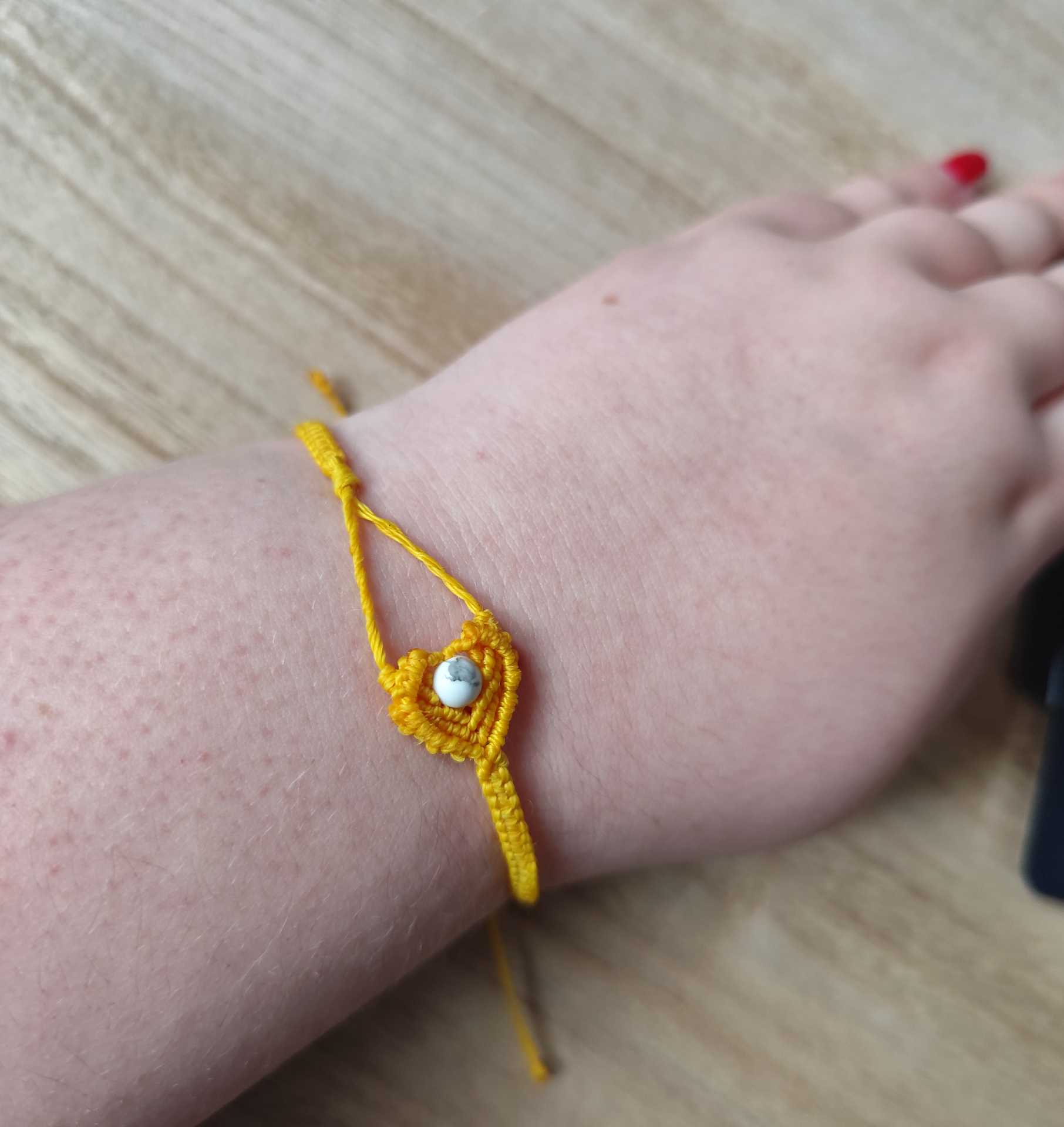 Tento amulet byl vytvořen pro chvíle, kdy budeš potřebovat najít svůj vnitřní klid a znovu se spojit se svou intuicí. Zářivá žlutá barva nese esenci radosti a optimismu, zatímco přírodní howlit vnáší do tvých dnů hluboký mír a trpělivost.